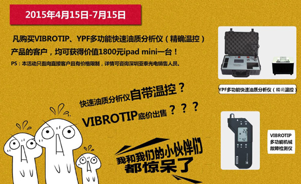 為慶祝亞泰光電自主研發(fā)的帶“精確溫控”功能快速油質(zhì)分析儀成功問(wèn)世, 自2015年4月15日起,特進(jìn)行為期三個(gè)月的“以舊換新、免費(fèi)試用”活動(dòng)。