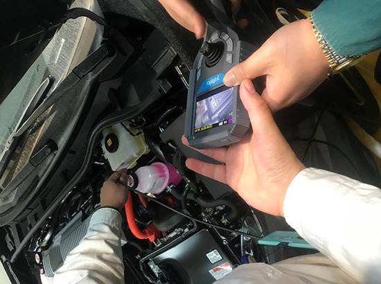 1.總裝使用的科室為[質量管理科],汽車完成裝配出庫的時,需要記錄發動機上面的標碼,現場演示時中方的技術員與合資方技術員對亞泰光電MIE615工業內窺鏡像素非常滿意,技術人員現場拿手機把亞泰內窺鏡品牌、型號都拍了下來。