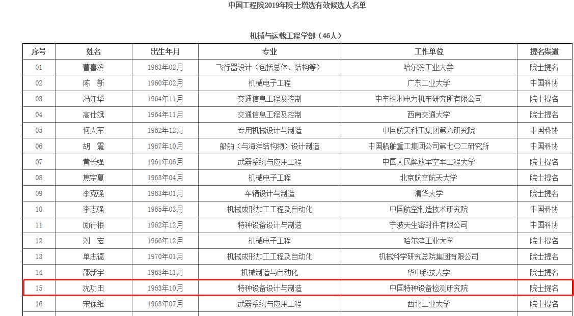 熱烈祝賀我會理事長沈功田先生入選中國工程院2019年院士增選有效候選人名單