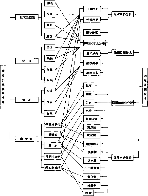 圖2.1柴油機摩擦學故障與油液監測方法的相互關系