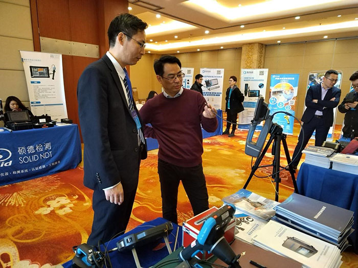整個現場會議氣氛好,交流很深入和暢快,深圳市亞泰光電技術有限公司鄭總再次當選副主席(狀態監測大會每五年換屆一次),正如在此次大會上,各與會專家所作的報告引起熱烈反響一樣,亞泰光電在狀態監測技術方面所取得的成績同樣讓行業內外為之矚目,在會議現場的亞泰光電產品專區展臺向專家、學者、行業從業者等全方位展示公司自主研發的最新狀態監測明星產品:在線油液監測系統、風電油液傳感器、油液監測傳感器、鐵量儀、三維工業內窺鏡等,現場展示吸引了眾多專家、學者和從業者的關注并得到了充分的肯定,現場氣氛火爆。