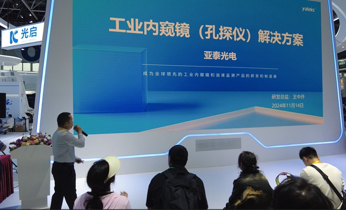 11月14日,亞泰光電繼續在航展現場舉辦了先進檢測技術交流會。此次交流會聚焦于工業內窺鏡(孔探儀)解決方案及在線油液監測傳感器技術。公司研發總監王中開先生再次登臺,詳細介紹了亞泰光電在工業內窺鏡領域的最新研究成果和解決方案。這些方案以雙百萬高清晰度、極細管徑、極近焦鏡頭等特點,能夠滿足航空航天等不同行業客戶的多樣化需求。