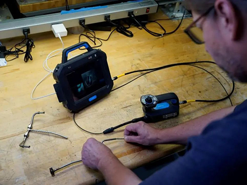 柔性導向技術:采用仿生學設計的360°任意導向探頭,2.8mm直徑管徑在管道內實現精準操控,彎曲半徑小于同行標準15%,尤其適用于航空發動機、精密機械等狹小空間檢測場景。