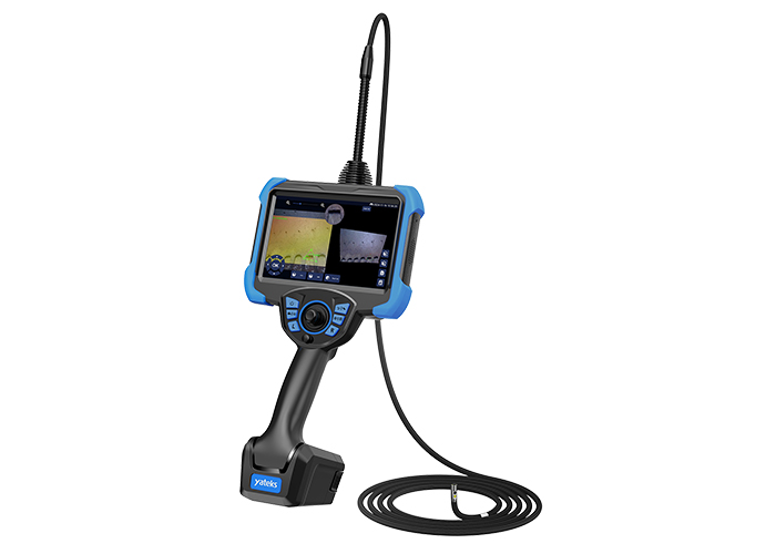 IE系列采用7″IPS高清液晶護眼屏,分辨率高達1920*1080,具備觸摸、按鍵雙功能,操作快速方便;采用亞泰光電專利技術,自行開發圖形處理器技術,使圖像、視頻響應速度更快,呈顯畫面更清晰細膩。探頭360°全方位旋轉、過載保護并自動鎖定、復位,實現遠距離圖像傳輸,可以進入到更深的通道檢測,儀器主要由攝像模組、插入管、主機、操作手柄四部分組成。它是集光學、精密機械、電子機械、電子技術和顯微攝像技術一體的新型無損探傷儀器,常用于肉眼無法觸及到的內部表面缺陷檢測。