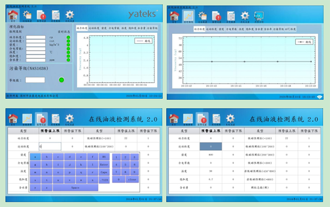 本系統(tǒng)集成了多種技術(shù)先進(jìn)的在線油液傳感器,可監(jiān)測(cè)潤(rùn)滑油粘度、密度、溫度、介電常數(shù)、水分、金屬磨粒、污染度傳感器等等多種潤(rùn)滑油的理化指標(biāo)、污染度指標(biāo)、金屬磨粒指標(biāo)。能判斷設(shè)備早期故障和及時(shí)提醒用戶,與傳統(tǒng)的時(shí)間表相比,可以采取更低成本的保養(yǎng)措施,實(shí)現(xiàn)為設(shè)備長(zhǎng)久穩(wěn)定運(yùn)行保駕護(hù)航。